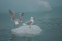 Glaucous gull leaving ice, Monaco Glacier, Leifdfjorden, Spitzbergen