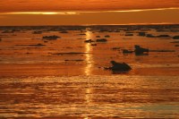 Sunset reflected in sea, Scoresby Sund, East Greenland